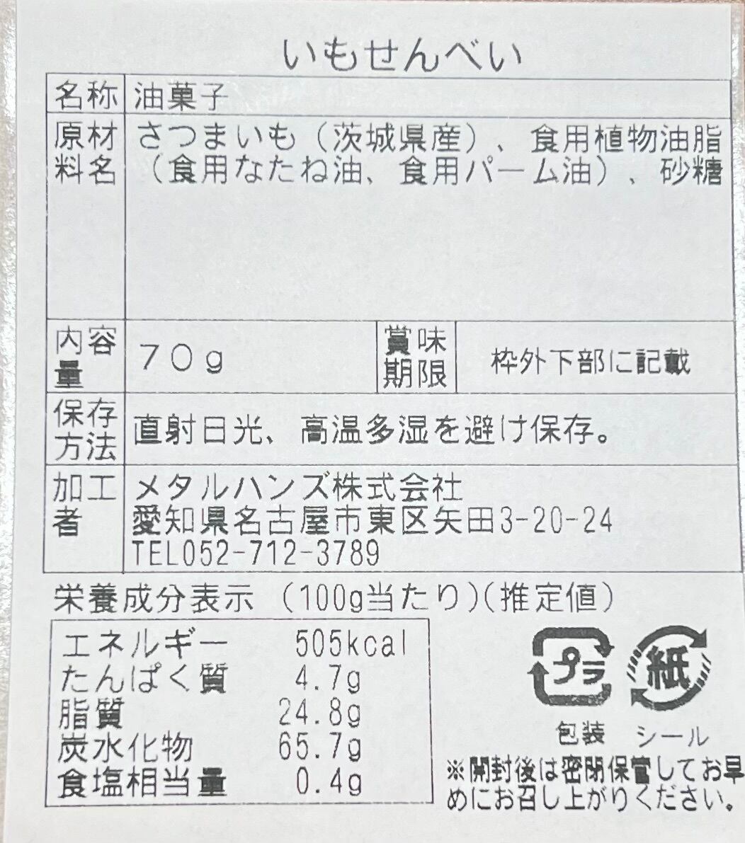 茨城特産のサツマイモをせんべいに致しました。油で揚げて少量の砂糖を絡めた、ほんのり甘いサツマイモのお菓子です。パリッとポリとした歯ごたえが楽しめます。